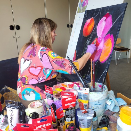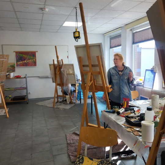 Dabei standen ihnen verschiedenste Maltechniken zur Verfügung – von Aquarell über Acryl bis hin zu experimentellen Mischformen. Auch bei den Formaten gab es keine Vorgaben: Ob klein und detailreich oder groß und ausdrucksstark – der Kreativität waren keine Grenzen gesetzt. Die Atelierwoche bot Raum zum Ausprobieren, Weiterentwickeln und zum künstlerischen Austausch untereinander. So entstanden vielfältige und persönliche Werke, die die unterschiedlichen Stile und Ideen der Teilnehmenden eindrucksvoll widerspiegeln. Die nächste Chance auf eine Woche voller Freude, Farbe und kreativem Austausch bei unserer Kursleiterin Sylvia Rose-Krampe gibt es dann in den Herbstferien, im Kurs “Atelierwoche in den Herbstferien”!